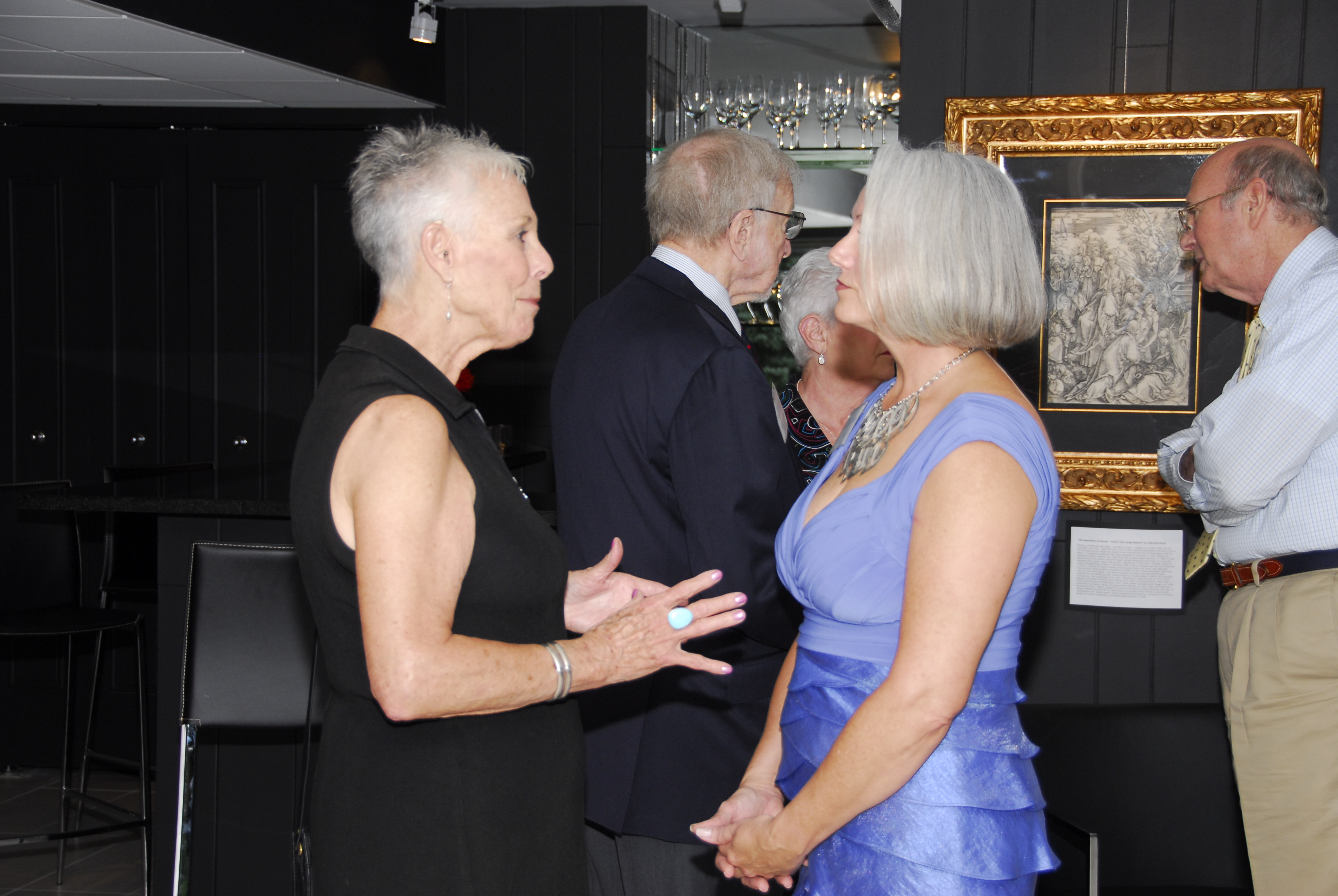 This event put both our renovations and these works of art on display for an enjoyable evening. Click on the little picture to view a slideshow of the event. The initial slides show the art and highlight the common arearenovations. The slides that follow those initial slides exhibit the fun had by all.